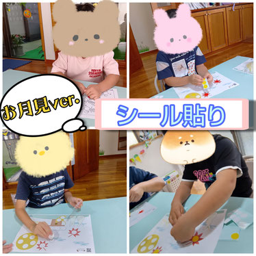 お団子・お月さま・もみじなど色にあわせてシールをぺたり♪